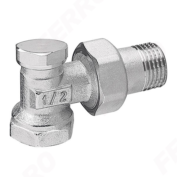 Кран радиаторный угловой запорный хром Ferro ZK2Y нр ½”-вр ¾”.