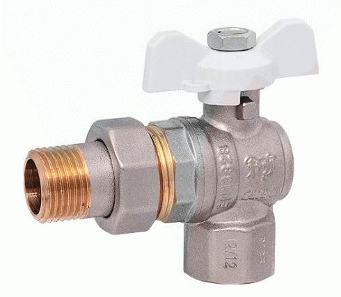 Кран шаровый латунный никелированный угловой STANDARD с полусгоном