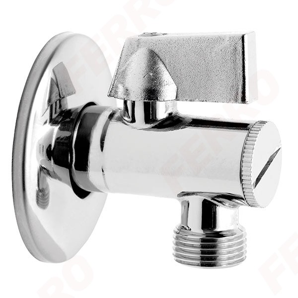 Кран угловой Ferro EZ1212KF 10 бар, с фильтром, ручка рычаг ал., нр½”-нр½”.