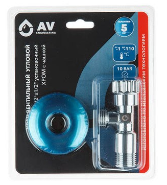 Кран вентильный угловой 1/2х1/2 с чашкой хром AV ENGINEERING (AVE256001) применяется в качестве запорной арматуры в системах питьевого и горячего водоснабжения. Основными конструктивными особенностями угловых вентилей AV Engineering являются угол закрытия на 90 градусов, позволяющий быстро, легко и надежно открыть/перекрыть воду.