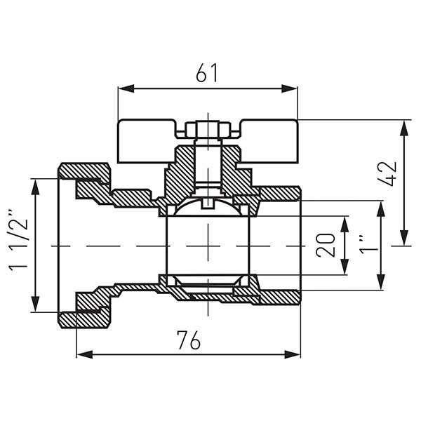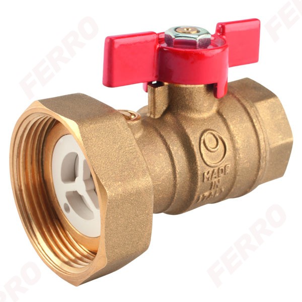 Шаровой кран Ferro для насоса 10 бар вр1 1/2 - вр1 KSP1W, обратный клапан, ручка „бабочка”, с полумуфтой, в индивидуальной упаковке