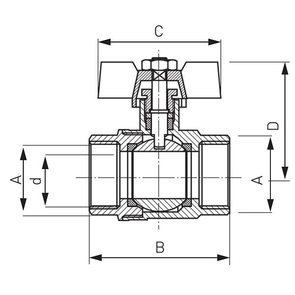Шаровой кран Ferro NORMAL 25 бар вр-вр1 KM3, ручка бабочка, гарантия 10 лет