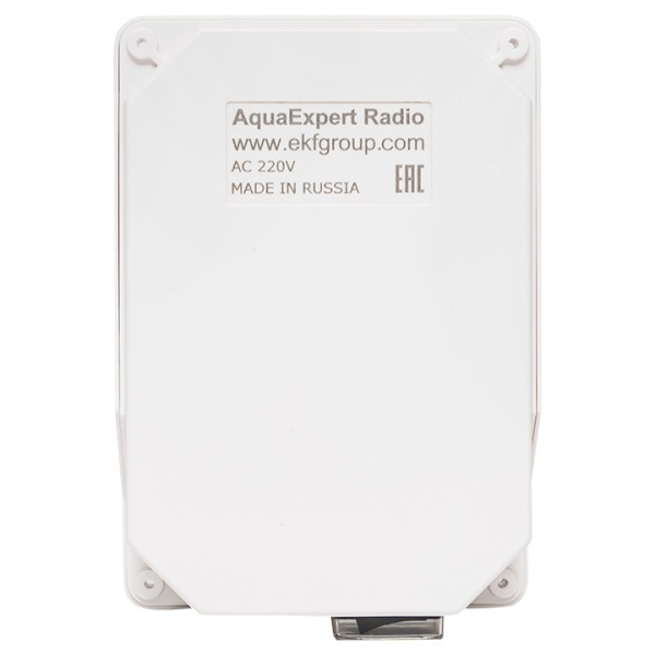 Блок управления системой AquaExpert RADIO EKF PROxima производства EKF, имеющий встроенный радиоприемник, работающий на частоте 868 МГц, предназначен для обеспечения контроля состояния подключенных к нему проводных датчиков протечки воды, радиодатчиков протечки воды, и управление шаровыми электроприводами, предназначенными для перекрытия водоснабжения (отопления) в случае возникновения протечки воды, а также подает световое и звуковое оповещение об аварии в сети водоснабжения. При попадании воды на электроды датчика протечки, подключенного к блоку управления, происходит автоматическое перекрытие подачи воды, включается световое и звуковое оповещение об аварии.