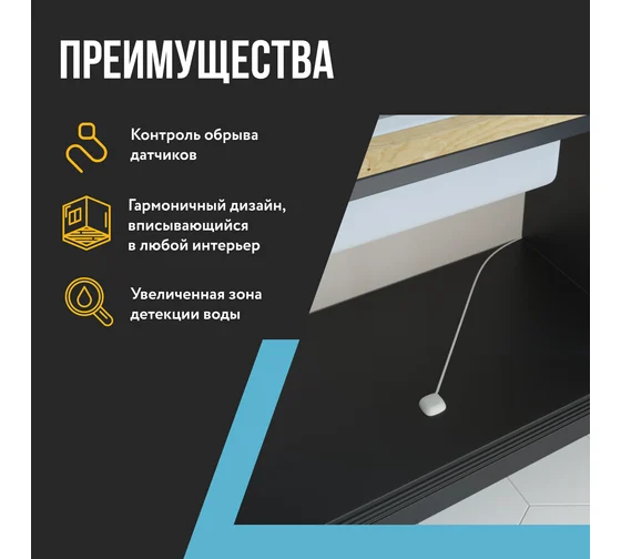 Датчик протечки воды Stahlmann 001, проводной, габаритные размеры: 57,3 x 57,3 x 18 мм, степень защиты: IP68, срок службы: не менее 10 лет