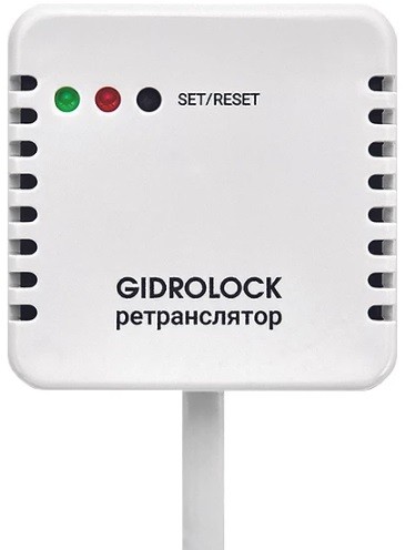 Ретранслятор Gidrolock предназначен для передачи сигнала радиодатчиков WSR с рабочей частотой 868 МГц на большие расстояния путем повторения и передачи их сигнала. За счет этого дальность увеличивается не менее чем в два раза.