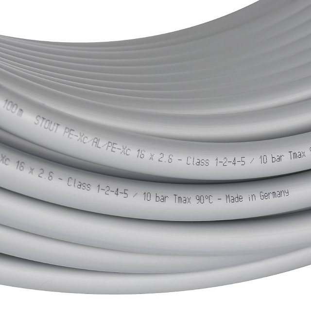 Труба напорная из сшитого полиэтилена PE-Xc/Al/PE-Xc товарного знака STOUT с барьерным алюминиевым слоем предназначена для систем холодного, горячего водоснабжения и отопления.