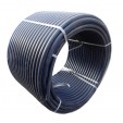 Трубы из полиэтилена (трубы ПЭ) для систем холодного водоснабжения. Трубы ПЭ 100 диаметром 63 мм из полиэтилена низкого давления, предназначены для транспортировки питьевой воды температурой до сорока градусов. Труба изготавливается согласно ГОСТ 18599-2001 , цвет выпускаемой трубы черный с 4-х продольной синей полосой. Вся производимая труба имеет нанесенную во время производства маркировку в которой указаны диаметр, толщина стенки трубы, дата изготовления, метраж.
