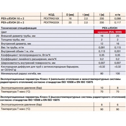 Трубы Wavin PEX-c/EVOH, изготовлены из PEX-c – полиэтилена, сшитого химико-лучевым методом. Сшитый полиэтилен PEX-c придаёт трубам долговременную устойчивость к высокой температуре и давлению. Отличается высоким качеством материала. Используется в системах тёплого пола и водоснабжения. Может применяться для подачи сжатого воздуха, газообразных жидкостей и химических веществ. Совместима со всеми типами фитингов ø16 любого производителя (KAN,Wavin, APE, Herz) (PUSH, компрессионные или пресс-фитинги). Сшитый полиэтилен WAVIN имеет защитный слой EVOH, препятствующий проникновению кислорода в теплоноситель через стенку трубы.