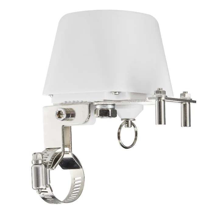 Установите манипулятор на кран подачи воды на трубопроводе домашней системы водоснабжения. Надежно зафиксируйте манипулятор, плотно затянув хомут на трубе и Т-образное крепления на рычаге шарового крана*. Подключите устройство к питанию через адаптер (входит в комплект).