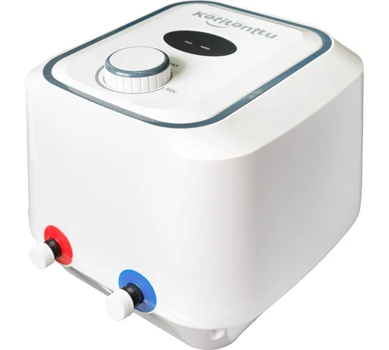 Электрический накопительный водонагреватель Kotitonttu KMD-15 - это надежная компактная модель с нижним вариантом подводки. Она предназначена для установки в кухне под раковину. Нагревательный элемент бойлера изготовлен из нержавеющей стали, а внутренний бак обладает двойным слоем эмали, что защищает его от коррозии. Благодаря этому он прослужит вам долгие годы.