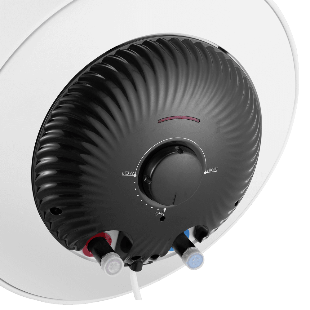 На передней панели водонагревателя расположена удобная ручка, с помощью которой можно задать нужную температуру нагрева воды в диапазоне от 30 до 75°С.