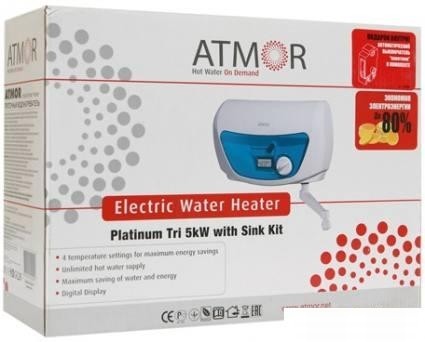 Проточный водонагреватель Atmor New 5 совмещенный (кран+душ) мощностью 5 кВт