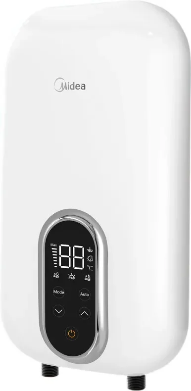 Проточный водонагреватель Midea MIWH-8500, электрический, настенный, производительность 5 л/мин, установка вертикальная, мощность 8.5 кВт, нижняя подводка