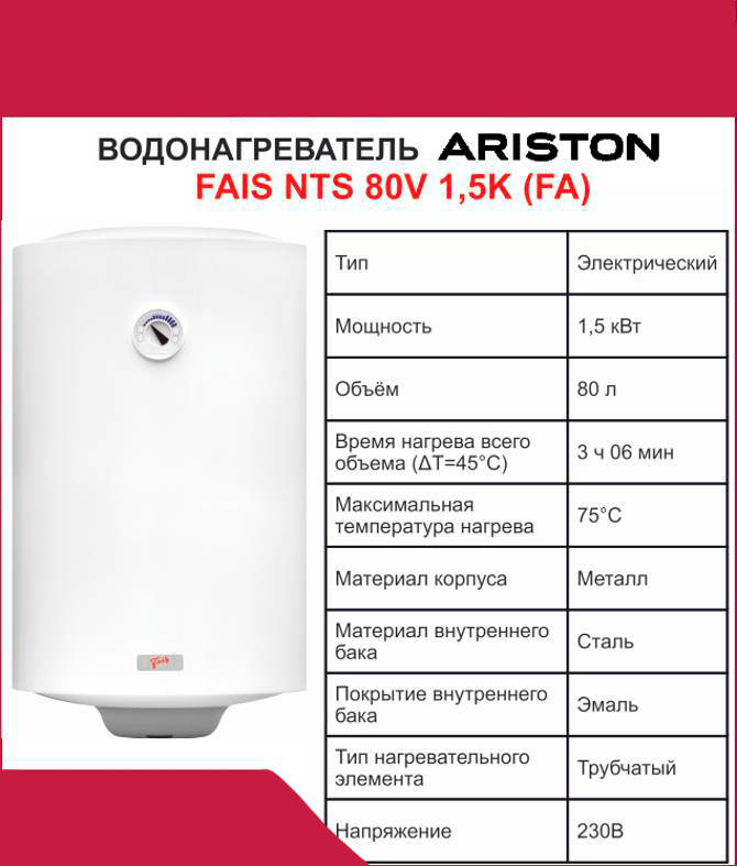 Водонагреватель накопительный Ariston Fais NTS 80V 1,5К (FA) с вертикальной установкой