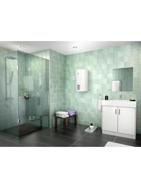Ariston LYDOS R ABS 80 V 3201972 — вертикальный настенный накопительный водонагреватель объемом 80 литров. Предназначен для обеспечения горячей водой бытовых и промышленных объектов. Мощность — 1500 Вт, управление механическое. Встроенный термометр позволяет отслеживать, до какой температуры нагрета вода, а защита от перегрева предотвратит поломку устройства. Напряжение — 230 В. Внутреннее покрытие бака TitaniumShield, что защищает стенки от коррозии. Тип нагревательного элемента трубчатый. Время нагрева всего объема составляет 2 ч 37 мин. Максимальная температура нагрева воды 75 С. Подключение холодной/горячей воды предусмотрено снизу, давление в водопроводе не должно быть менее 0,2 Бар. Размеры (ВхШхГ) — 758х450х480 мм. Вес — 22 кг.