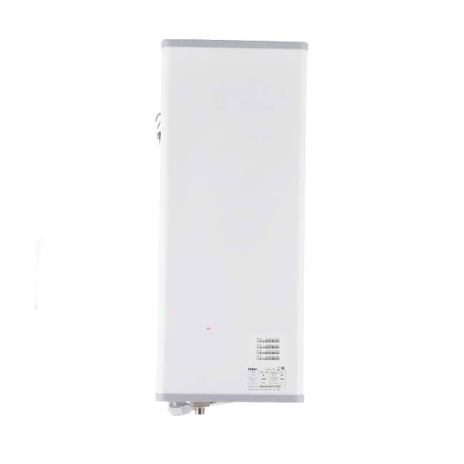 Накопительный электрический водонагреватель HAIER ES100V-F1(R) — плоский водонагреватель с кожухом из пластика, трехслойной эмалировкой бака, открытым ТЭНом из нержавеющей стали и электронным управлением. С помощью сенсорного управления вы можете задать количество человек, которые будут пользоваться аппаратом. Исходя из этих показателей, устройство автоматически определит температуру нагрева (а это экономит как время, так и электроэнергию). Есть функция ускоренного нагрева воды и технология Safe Care (защита от удара током).
