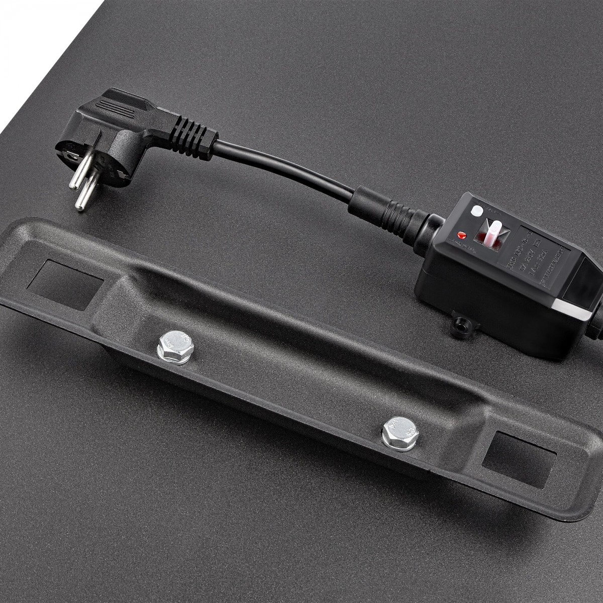 На панели управления можно выбрать функцию половинной мощности. Она позволяет экономить электроэнергию и использовать прибор в помещениях с ограниченной мощностью сети, например на даче. Установив полную мощность, включается функция быстрого нагрева до заданной температуры.