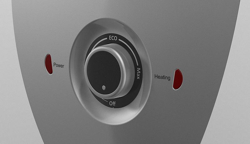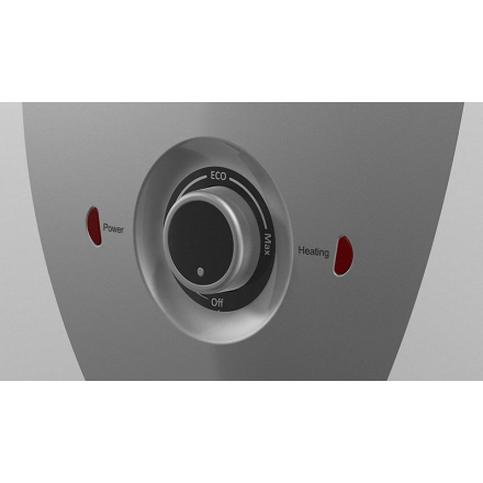 На передней поверхности водонагревателя расположена панель управления. На ней пользователь простым поворотом регулятора может выбрать один из трех вариантов нагрева воды: Min, ECO или Max.