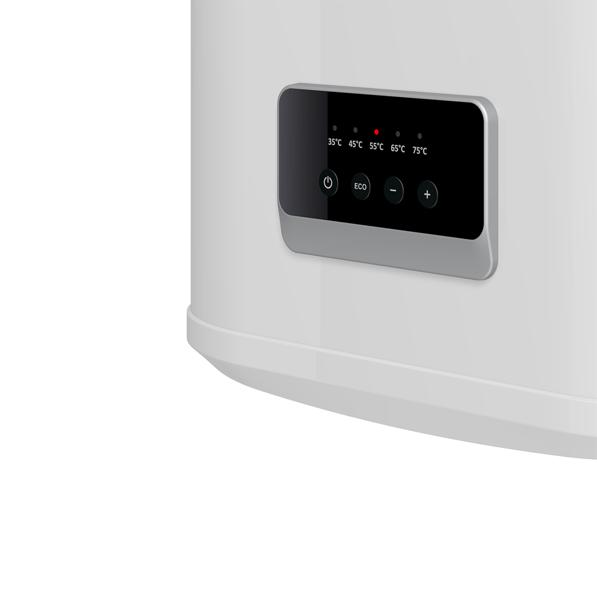 Во-вторых, водонагреватель имеет «умную» электронную систему управления Smart Control, которая в течение первой недели запоминает привычки пользователя и в дальнейшем ориентируется на них в своей работе, что позволяет экономить электроэнергию.