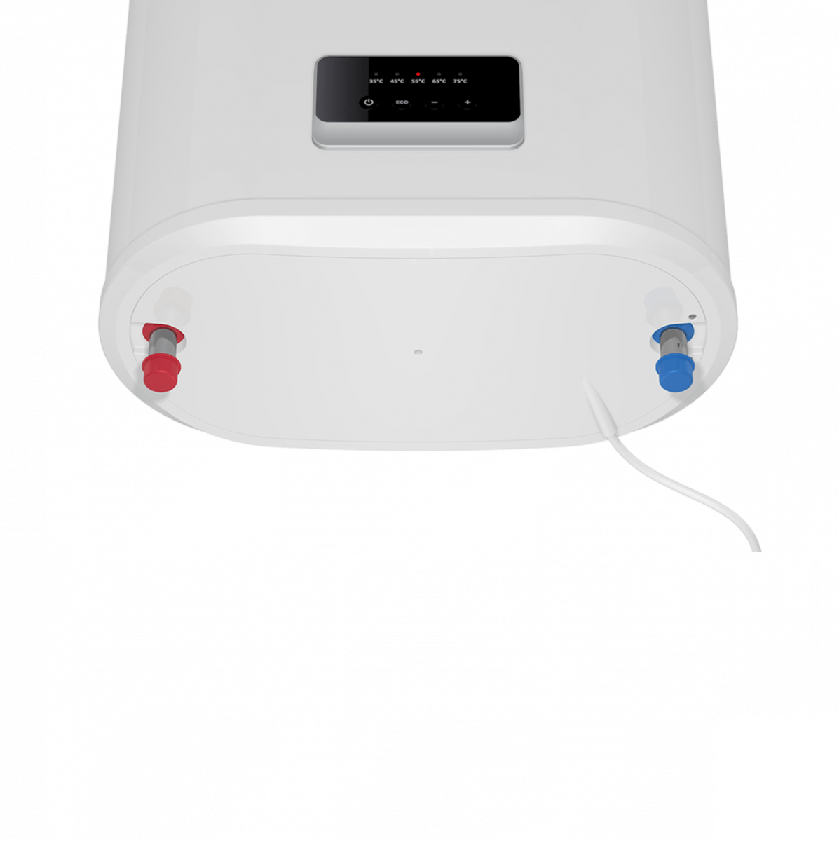 Thermex Optima 50 Wi-Fi представляет собой суперплоский электроводонагреватель со сдвоенным внутренним баком объемом 50 литров (изготовленным по технологии Double Tank) и внешним корпусом, разделенными экологически чистой пенополиуретановой теплоизоляцией, что сокращает потери тепла и экономит электроэнергию. В эту емкость вмонтированы два патрубка. Один (с синим кольцом) — для впуска холодной воды. Второй (с красным кольцом) — для выхода нагретой горячей воды. Нагрев воды внутри баков производится при помощи трубчатого электронагревателя (ТЭНа) мощностью 2 кВт, управляемого термостатом. У ТЭНа имеется также экономичный режим мощности — 1,2 кВт.