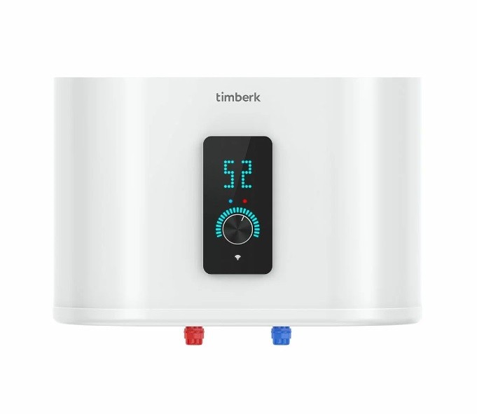 Водонагреватель накопительный Timberk T-WSS30-N77-U-WF, электрический, вертикальный/горизонтальный, настенный, мощность 2 кВт, объем бака 30 л, мокрый ТЭН, электронное управление, встроенный Wi-Fi, подключение к Алисе