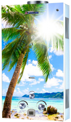 Etalon Y 10 GI (Пальма) представляет собой модель газового приточного водонагревателя с автоматическим розжигом. Преимуществом модели является уникальный дизайн корпуса. В оборудование предусмотрены датчики ионизации, перегрева и температуры подающейся воды. В качестве топлива для колонки используется природный газ. Двигатель защищен от перегрева и перенапряжения.