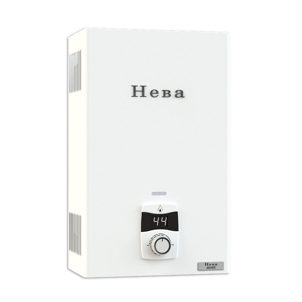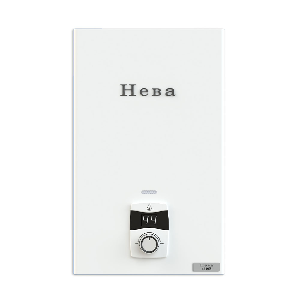 Газовая колонка Neva 4510E – мощность 20 кВт, проток воды 10 л/мин. , автоматическое зажигание, дисплей, регулировка температуры.