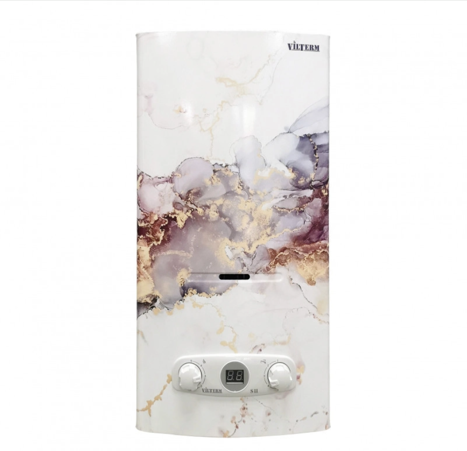 Газовая колонка Vilterm S10 предназначена для приготовления воды для хозяйственно бытовых нужд. В водонагревателе Вилтерм установлен долговечный медный теплообменник. Данная модель очень компактная и легкая, поэтому найти подходящее место для её установки не составит труда даже в малогабаритной квартире. На передней панели колонки Vliterm S10 расположен цифровой ЖК дисплей - он проинформирует вас о текущей температуре воды. Проточный водонагреватель Vilterm S10 оснащен автоматическим розжигом от батареек, то есть прибор начинает автоматически работать при открытии крана и прекращает при закрытии. Отсутствие постоянно горящего запального пламени - гарантия безопасности и долговечности колонки.