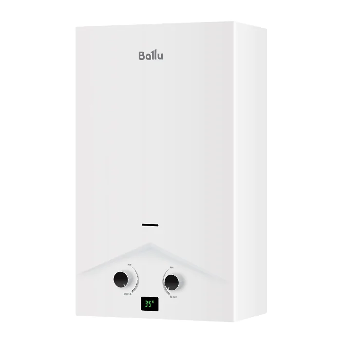 Газовая колонка Ballu GWH 10 Warmix, номинальная мощность 20 кВт, производительность 10 л/мин, дисплей информативный LED
