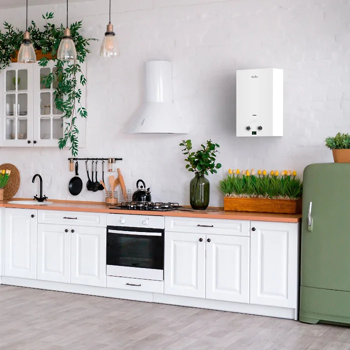 Современный компактный газовый водонагреватель Warmix станет незаменимым поставщиком горячей воды, если ваш дом не подключен к центральному горячему водоснабжению. Выполненный в классическом белом цвете и традиционной форме для газовых колонок прибор станет естественной и незаметной частью интерьера. Обладая производительностью 10 л/мин., прибор позволит не только вымыть посуду, но и с комфортом принять душ.
