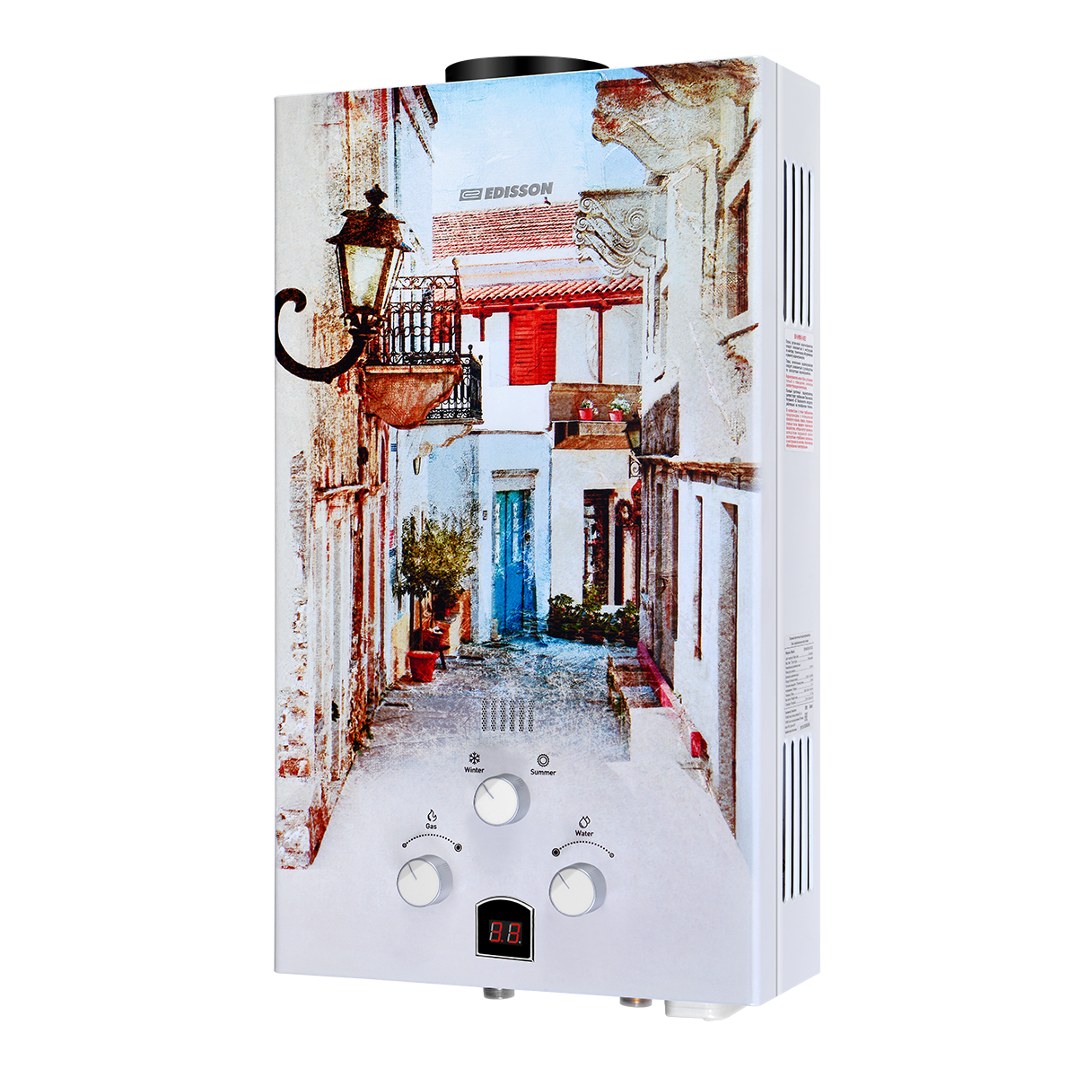 Газовая колонка Edisson E 20 GD (рисунок лиссабон) с открытой камерой сгорания и электророзжигом