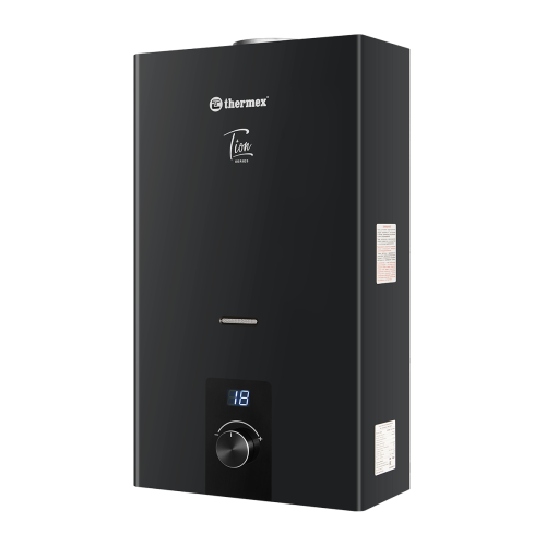 Газовая колонка Thermex T 20 D (Black), проточный, вертикальный/настенный, мощность: 20 кВт, производительность: 10 л/мин, камера сгорания: открытая