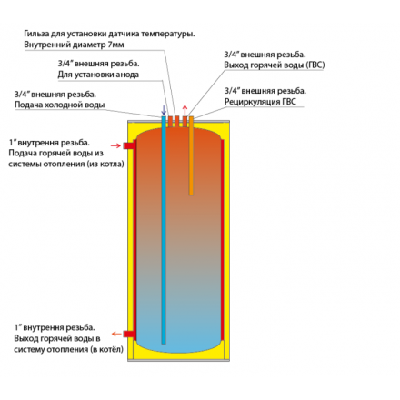 Все бойлера после изготовления проверяются на прочность и герметичность высоким давлением: контур горячего водоснабжения - 8 бар; контур отопления - 4 бар.