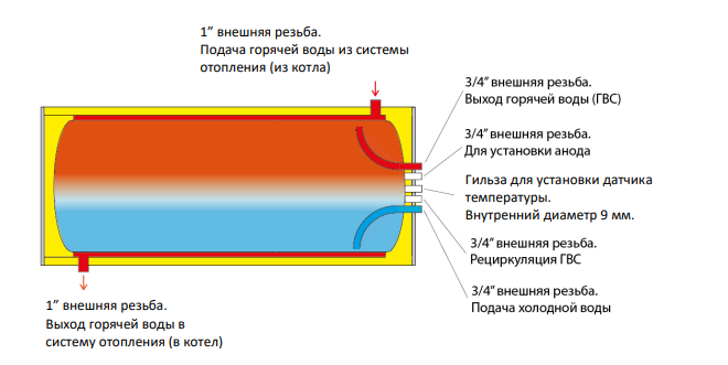 | Подключение контура ГВС, дюйм | 3/4" |