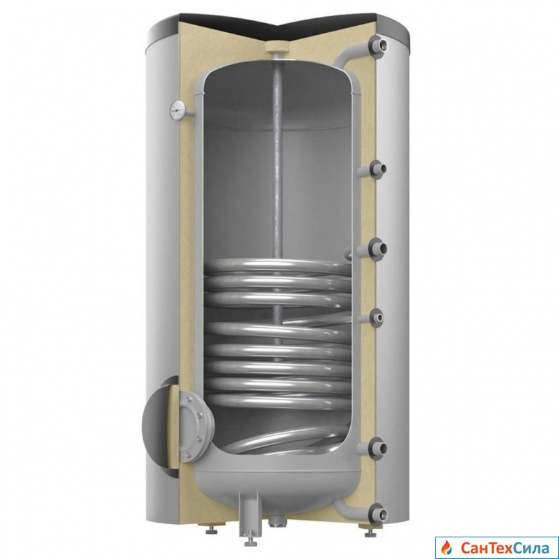 Установка баков только вертикальная. Максимальное давление для теплообменника составляет 16 бар, для корпуса – 10. Максимальная рабочая температура для теплоносителя 110 °С, а для подогреваемой воды для контура — 95 °С.