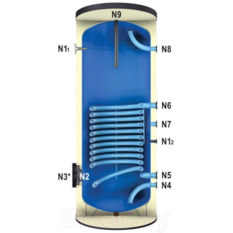 Емкость со змеевиком косвенного нагрева предназначена для приготовления горячей воды от внешнего источника.