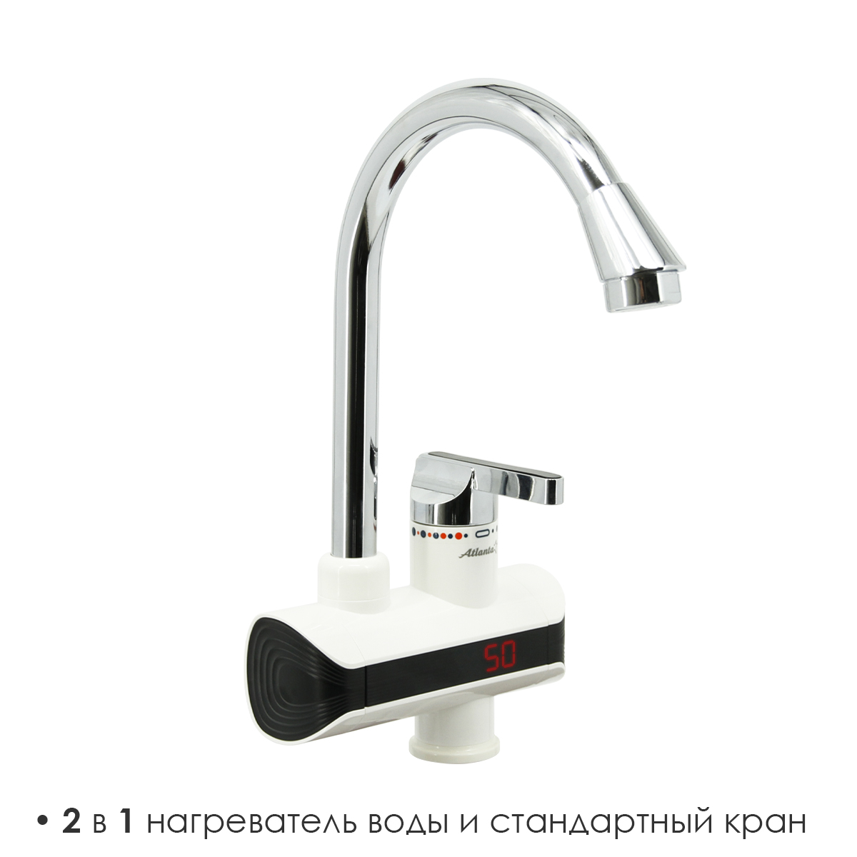 Кран-водонагреватель ATLANTA АТН-7432 белый, электрический, на мойку или столешницу, мощность: 3000 Вт, термометр