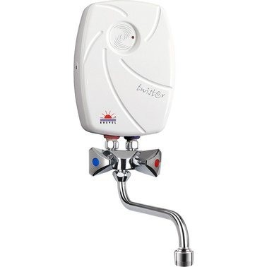 Водонагреватель безнапорного типа, может работать совместно только со специальным смесителем, который входит в комплект.Обеспечивает комфортное пользование, наиболее рациональный расход воды и экономию электроэнергии до 50%. Водонагреватель работает только в том случае когда открыт кран и греется только проточная вода а не большой резервуар с жидкостью. Водонагреватели данного типа отличаются компактной конструкцией и высокой нагревательной способностью. Корпус бойлера имеет высокую водостойкость, поэтому его можно использовать в любом помещении.