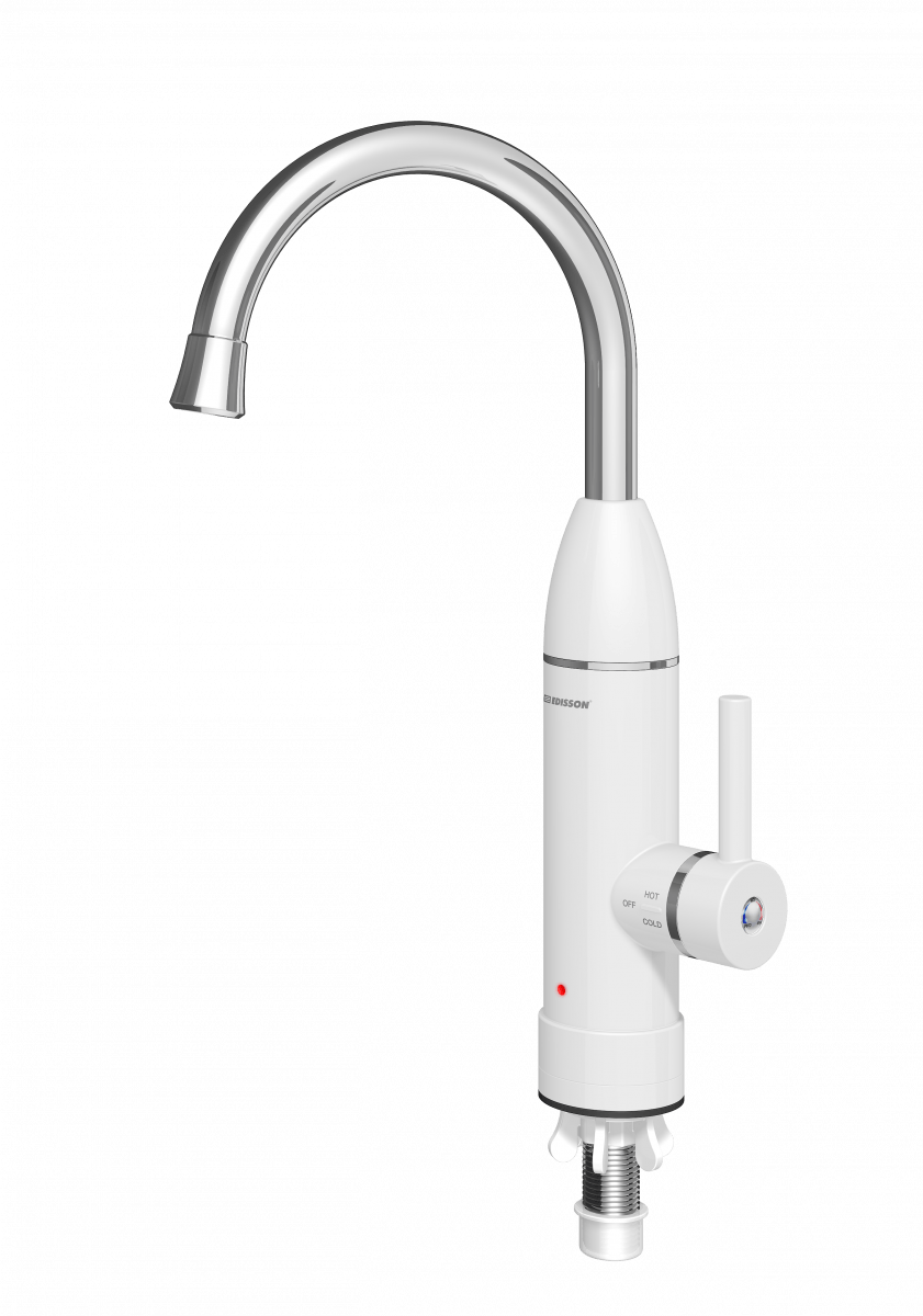 Проточный водонагреватель Edisson Mini 3000 моментального нагрева легко устанавливается вместо кухонного смесителя, подключается к стандартной розетке, напор и регулировка температуры настраивается механическим регулятором (как у стандартного смесителя), производительность 1,2-1,7 л/мин, моментальная подача горячей воды при открытии крана.