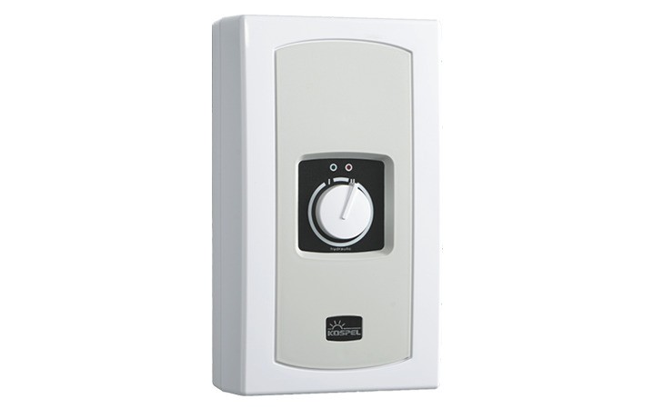 Электрические проточные водонагреватели Kospel EPMH имеют возможность установки полной мощности или экономичного режима. Водонагреватель включает первую или вторую ступень мощности в зависимости от величины протока. Надежная технология изготовления нагревательных элементов в медном корпусе гарантирует долговечность, невосприимчивость к содержанию в воде воздуха и загрязнений.