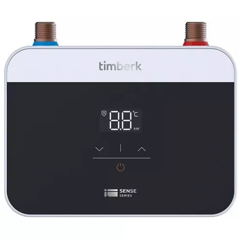 Проточный водонагреватель Timberk T-WI7-P18-SC, электронное управление, мощность: 5.7 кВт, установка: настенный, горизонтальный, подводка: верхняя, дисплей