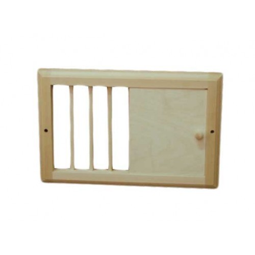 Вентиляционная решетка с задвижкой малая РВ-М - используется в качестве декоративного элемента для оформления вентиляции в бане (сауне) с возможностью открытия или закрытия отверстия вентиляции.