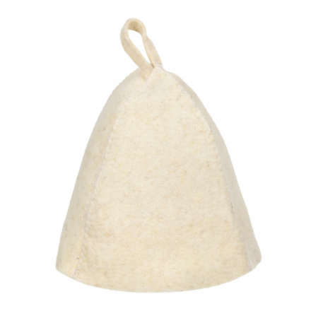 Шапка - незаменимый атрибут в бане, она предотвращает сухость и ломкость волос, а также защищает от головокружения. Выполнена из войлока, благодаря чему отличается практичностью и длительным сроком эксплуатации.