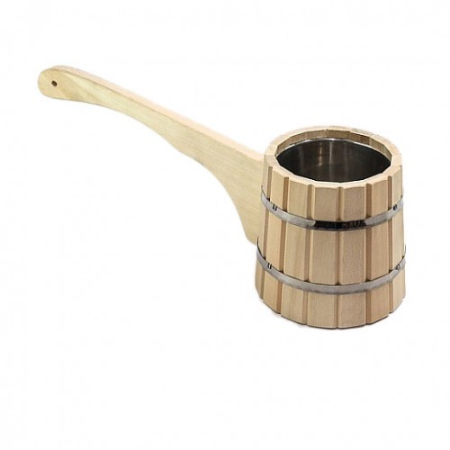 Черпак для бани бондарный с нержавеющей вставкой - используется в процессе поливания воды на камни. Черпак изготовлен из натурального дерева и оснащен нержавеющей вставкой.