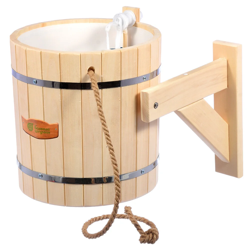Обливное устройство Русский душ 20 л c пластиковой вставкой и наливным клапаном в коробке, липа