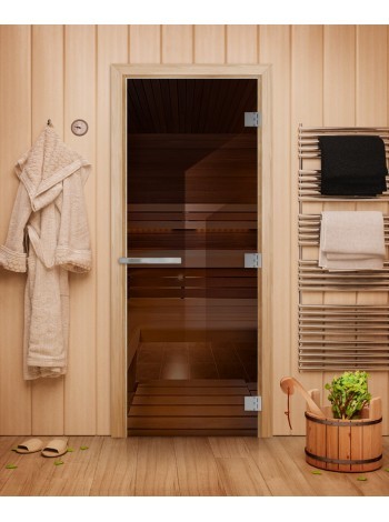 Дверь для бани Doorwood Эталон Бронза 1900x700 мм (стекло 10 мм, 3 петли, коробка листва) для установки в помещениях бани