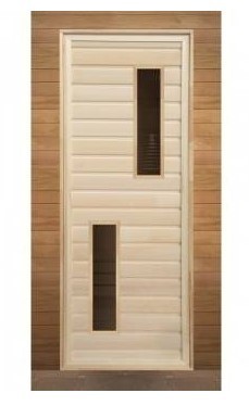 Дверь липа с 2-мя стеклами (кор.хвоя) 1900х700 для установки в помещениях бани