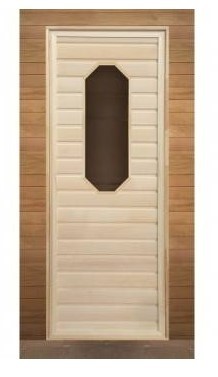 Дверь липа с восьмиугольным стеклом 1900х700 используется для установки в помещениях бани. Липа - традиционный вид древесины для изготовления изделий и внутренней обшивки бани или сауны. Древесина из липы хорошо переносит влажность, быстро сохнет, имеет низкую смолистость.