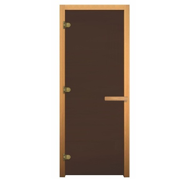Стеклянная дверь для бани матовая бронза – используется для установки в помещениях бани. Изготавливается из 8-ми мм каленого стекла, что делает ее максимально безопасной. Стеклянное полотно крепится к коробке с помощью 3-х петель. По периметру коробки установлен резиновый уплотнитель. Дверная коробка изготавливается из осины. Ручка прямоугольная. Защелка магнитная. Дверь может открываться как влево, так и вправо.