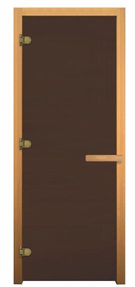 Стеклянная дверь для бани матовая бронза используется для установки в помещениях бани. Изготавливается из 8-ми мм каленого стекла, что делает ее максимально безопасной. Стеклянное полотно крепится к коробке с помощью 3-х петель. По периметру коробки установлен резиновый уплотнитель. Дверная коробка изготавливается из осины. Ручка прямоугольная. Защелка магнитная. Дверь может открываться как влево, так и вправо.